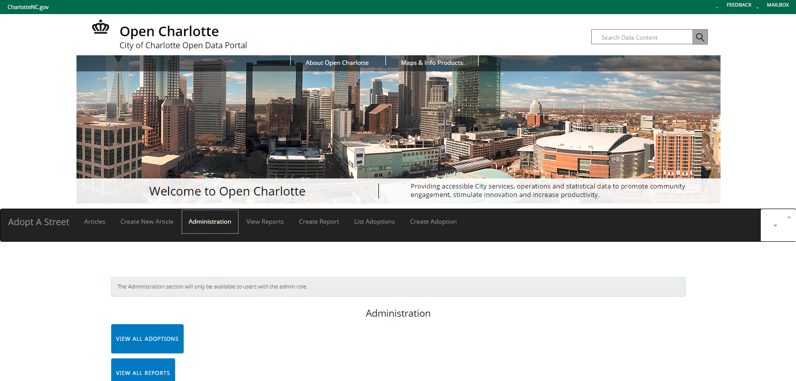 Screenshot 4: Layout of Administration interface for handing users, adoptions, and reports